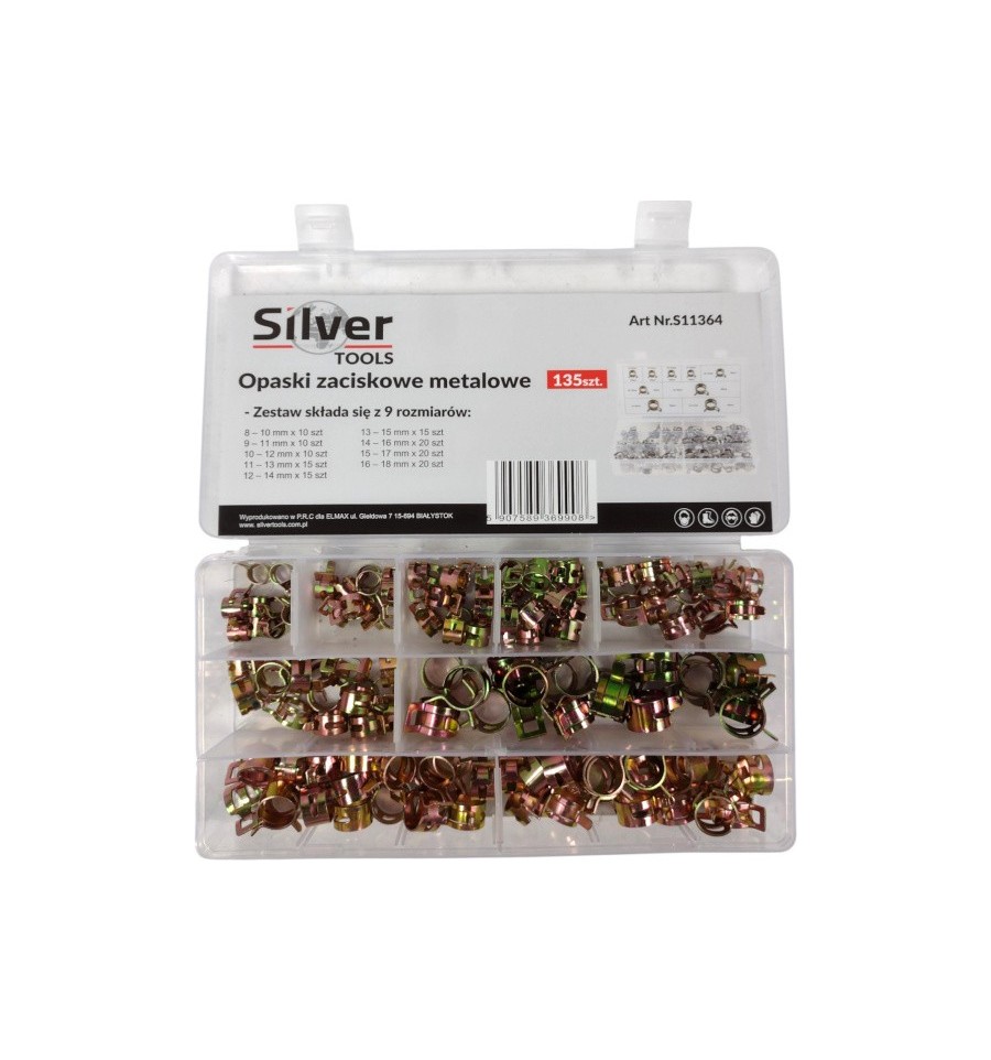 135 įvairių populiarių dydžių sąvaržų rinkinys: